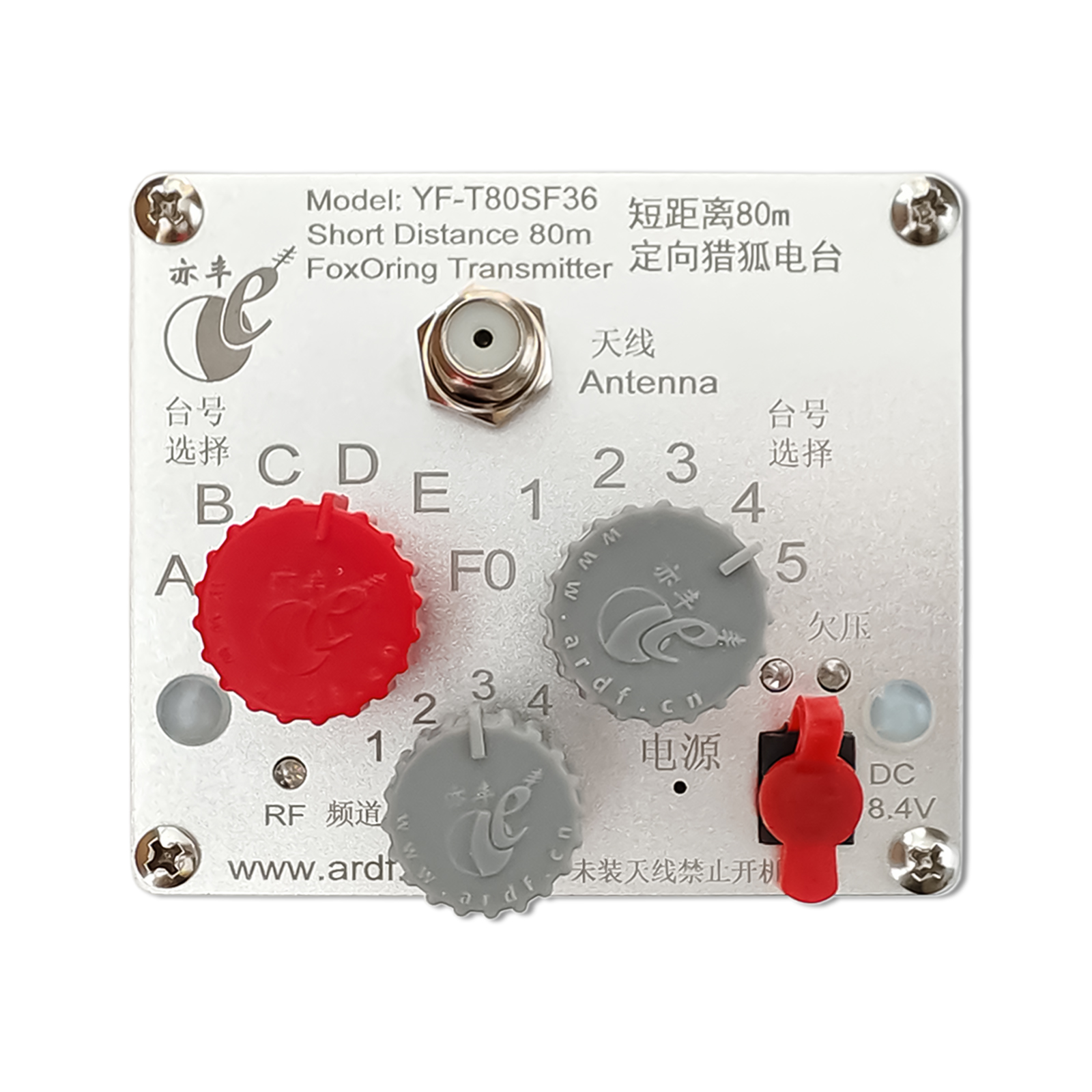YF-T80SF型电台是一款工作在3.5–3.6 MHz 频段、专为80米波段短距离无线电测向活动设计的专用设备,符合