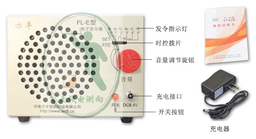 FL-E型电子发令器适用于国际、国内无线电测向、定向、现代五项、自行车、赛车、滑雪等项目的竞赛。具备 0.5′1′、2′、3′、4′、5′六档循环发令方式。本机采用高稳定器件,在软件程序支持下的微电脑控制电路,计时准确、工作可靠,放音宏亮,电源采用可充电锂电池组供电,外设充电接口。体积小、重量轻,使用携带方便,为各类竞赛和训练提供公平可靠的保障。