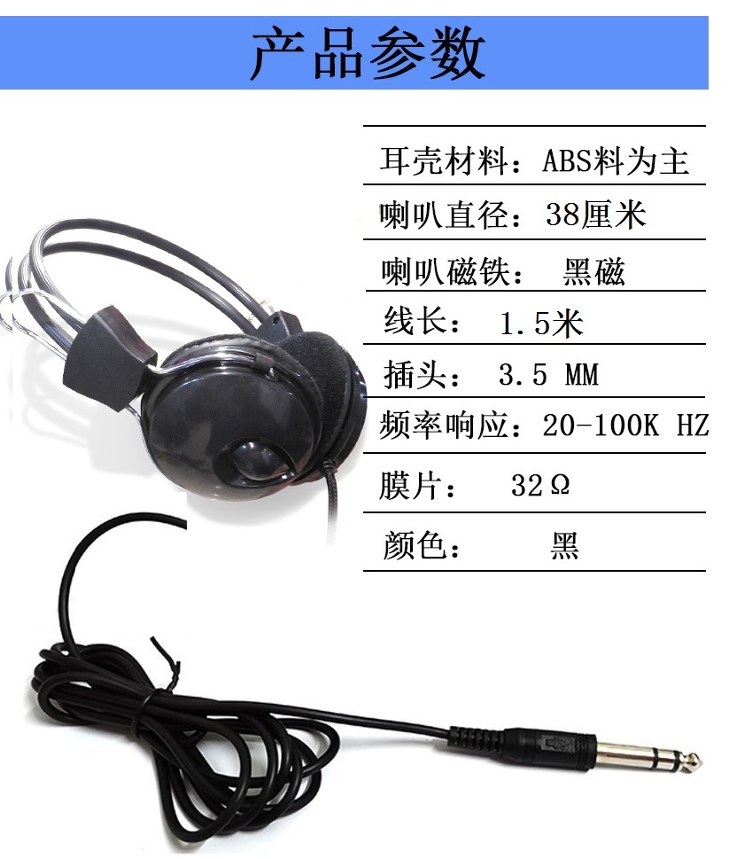 产品说明:本产品为双声道头戴耳机,具有音质优良,采用优质尼龙编织保护绳,保护内外层芯线, 高强度不易拉断,